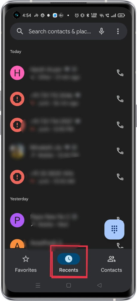 Open the Phone app > Recent > to view the recent calls detail whether it’s spam or a Normal call from any number.