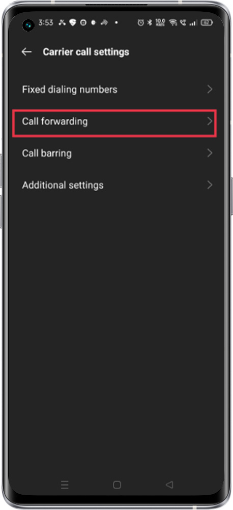 Open the Phone app > Tap More options > Settings > Calling Account > Carrier call Settings> Call Forwarding > Select the Voice call or Video call as per requirement > Select the Appropriate option to forward call > Enter the Mobile number, to which you want to forward calls.