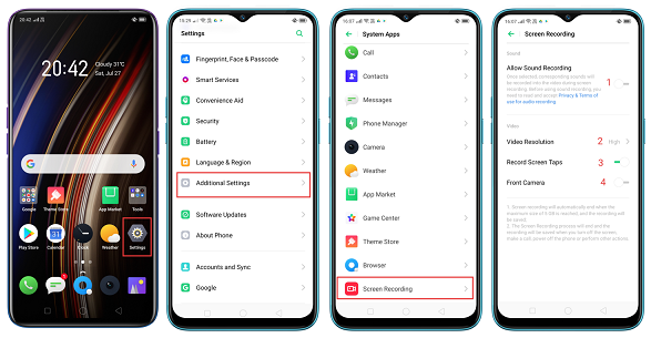 Once selected, corresponding sounds(The sound of the mobile phone speaker and the external environment sound) will be recorded into the video during screen recording. This feature is off by default.