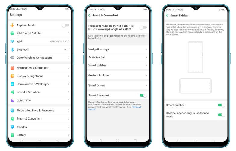 To enable Smart Sidebar, go to [Settings] > [Smart & Convenient] > [Smart Sidebar] > toggle [Smart Sidebar] to green to enable.
