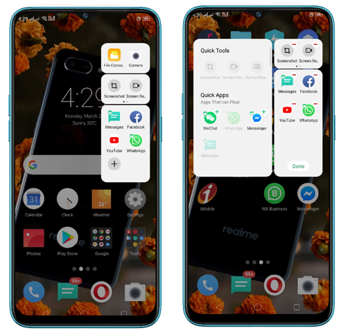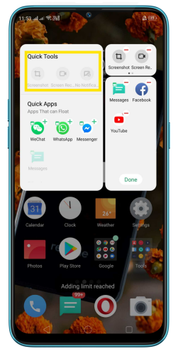 1. If the Smart Sidebar is full, long-press the Quick tools or the Quick Apps area for you to be able to manage or edit what will show on your Smart Sidebar. (Note: Long pressing the camera area will not work since you can't add anything here.)