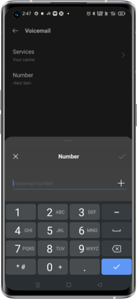 Open the Phone app > Tap More options > Settings > Voicemail > Advanced Settings > Number > Enter the voicemail number provided by the Operator
