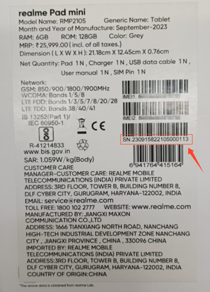 The serial number in the realme phone settings under "About device" and "Status information" is the chip ID of the phone, not the SN on the outer packaging box. It is a recognition identifier for the phone's chip.