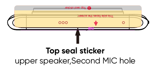 2. The body holes include: the receiver, power button, volume keys, speaker hole, SIM card tray, primary MIC hole, and secondary MIC hole; the specific location can be seen in the lamination position schematic below.