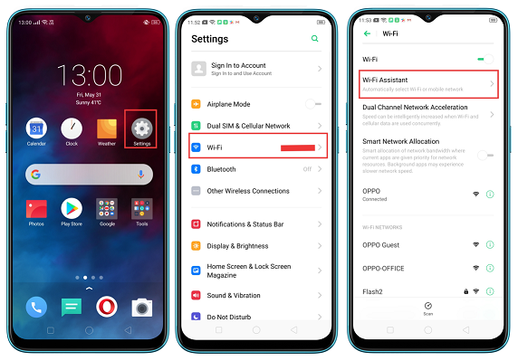 Settings --> Wi-Fi -->Wi-Fi Assistant --> Smart Select Best Wi-Fi Network.