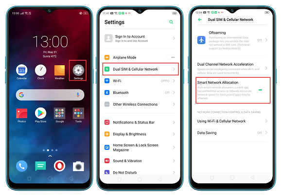 Settings -->Dual SIM & Cellular Network-->Smart Network Allocation.