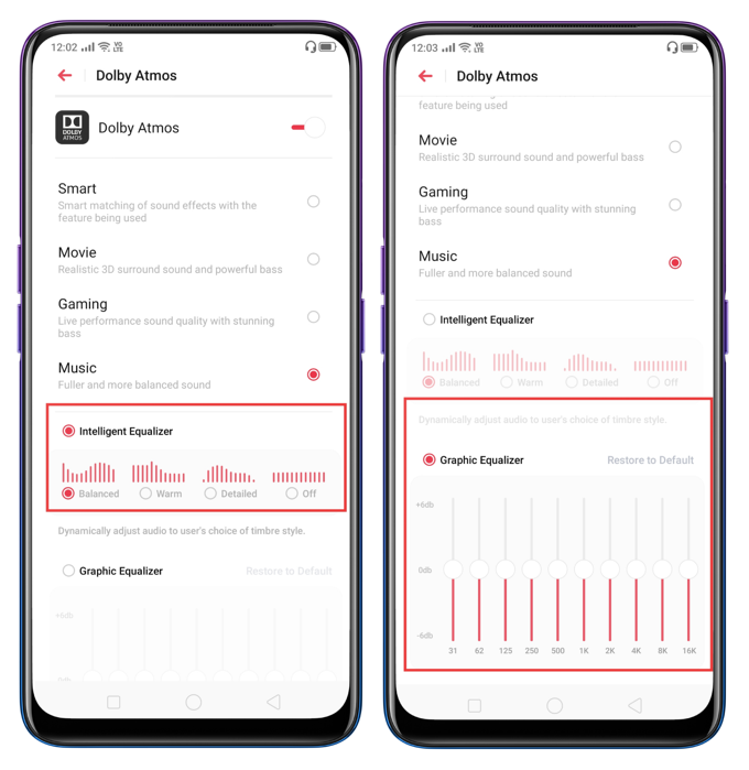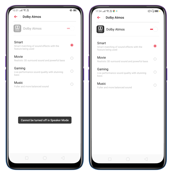 There are four kinds of sound effects: Smart, Movie, Gaming, and Music. During the user's use, the smart sound effect is enabled by default, and the corresponding sound effect is intelligently matched according to the function currently used by the user. It is also possible to select the sound effect by the user.