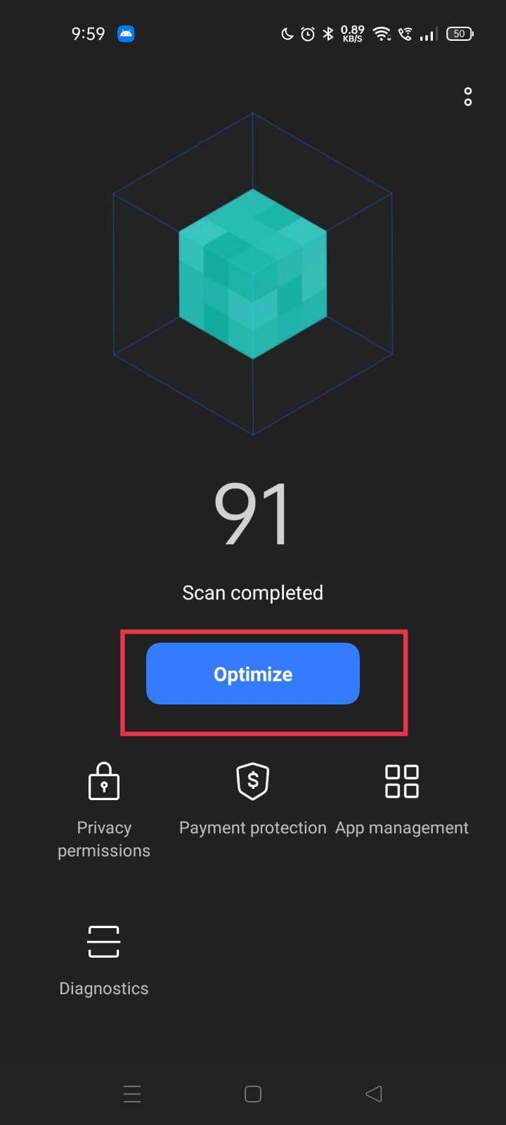 4. Please optimize the phone with the steps: Phone manager > Optimize and check again whether the feature is working. If not, follow the next step.